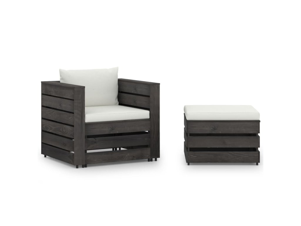 vidaXL 2-dielna sedacia súprava s podložkami, sivá, impregnované drevo