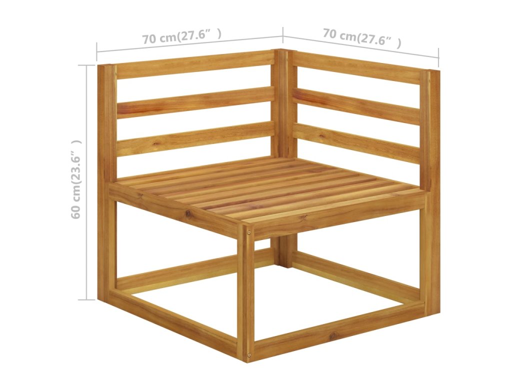 Sedacia súprava s rámom z masívneho akáciového dreva je pevná, robustná a trvácna. Vďaka olejovému náteru je sedacia súprava vhodná na vonkajšie použitie. Polstrované sedadlo a operadlá poskytujú maximálne pohodlie počas sedenia. Sada obsahuje rohovú pohovku a stredovú pohovku. Môžete ju skombinovať s ostatnými dostupnými modulárnymi segmentmi a vytvoriť si tak svoje vlastné konfigurácie záhradného posedenia!