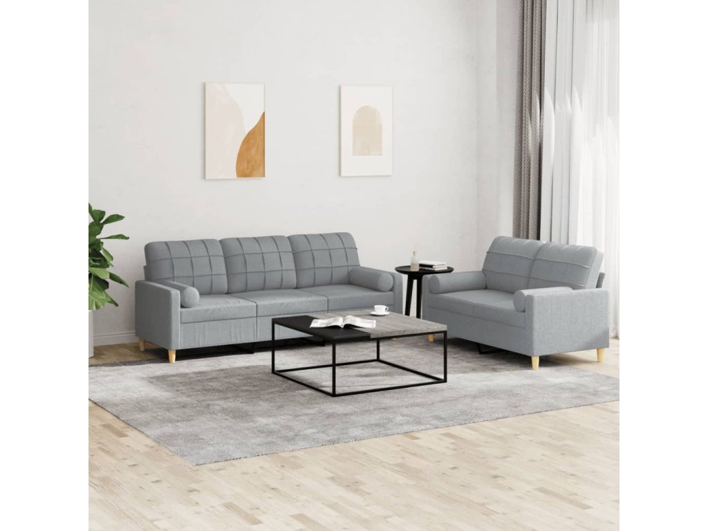 vidaXL 2-dielna sedacia súprava s vankúšmi bledosivá látka