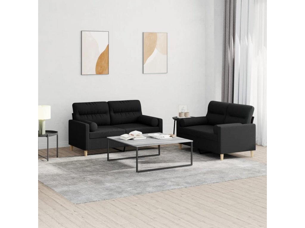 vidaXL 2-dielna sedacia súprava s vankúšmi čierna látka