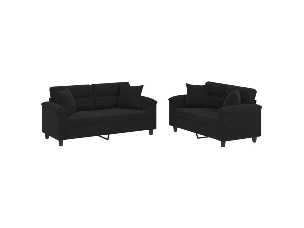 vidaXL 2-dielna sedacia súprava s vankúšmi čierna mikrovlákno