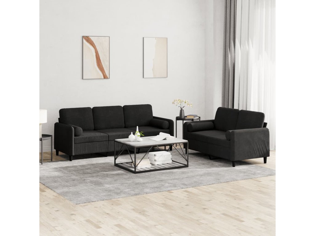 vidaXL 2-dielna sedacia súprava s vankúšmi čierna zamat