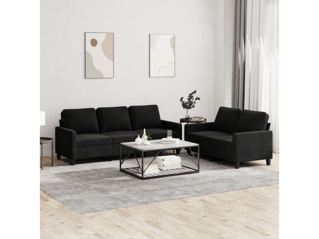vidaXL 2-dielna sedacia súprava s vankúšmi čierna zamat
