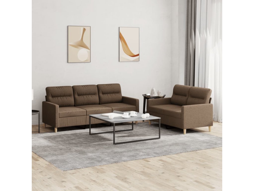 vidaXL 2-dielna sedacia súprava s vankúšmi hnedá látka