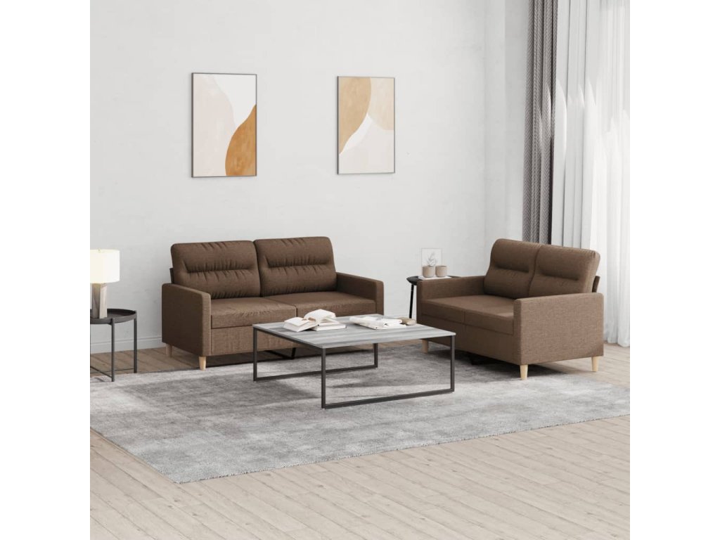 vidaXL 2-dielna sedacia súprava s vankúšmi hnedá látka