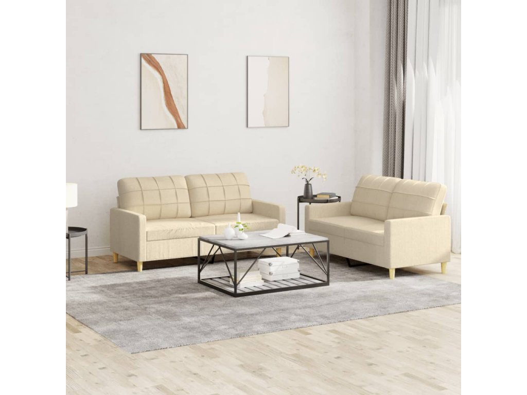 vidaXL 2-dielna sedacia súprava s vankúšmi krémová látka