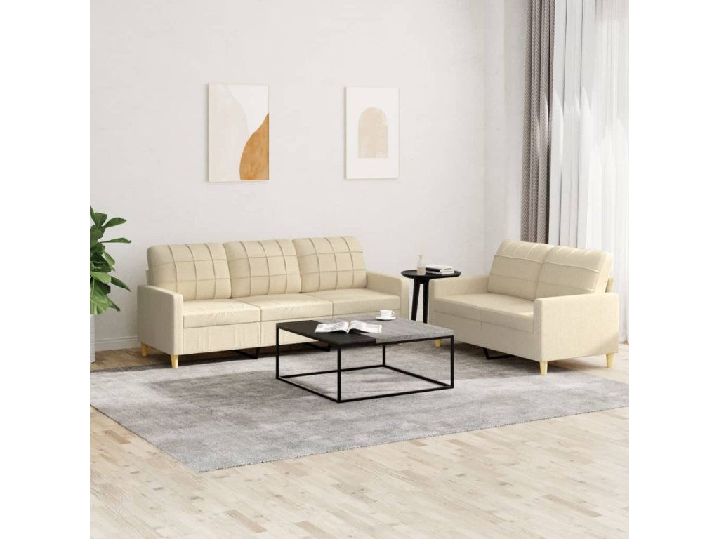 vidaXL 2-dielna sedacia súprava s vankúšmi krémová látka