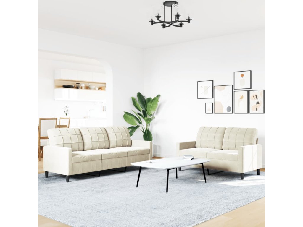 vidaXL 2-dielna sedacia súprava s vankúšmi krémová zamat