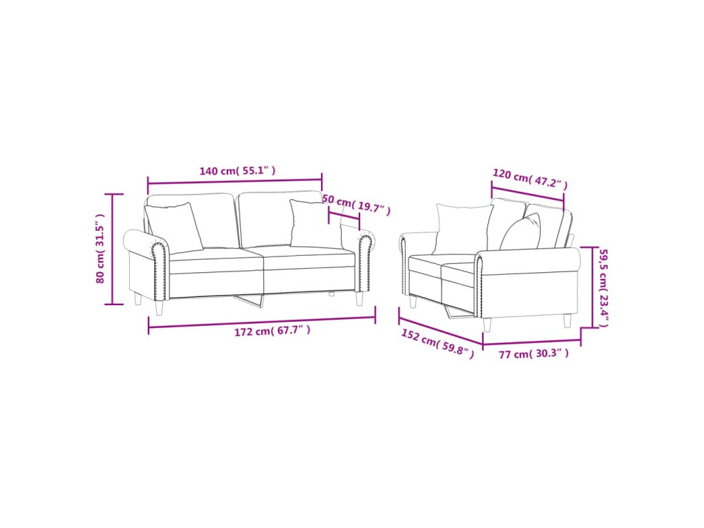 - Veľkosť vankúša (každý): 40 x 40 cm (D x Š)