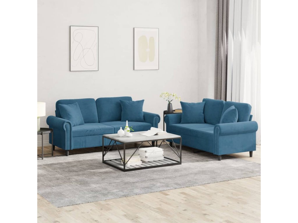 vidaXL 2-dielna sedacia súprava s vankúšmi modrá zamat