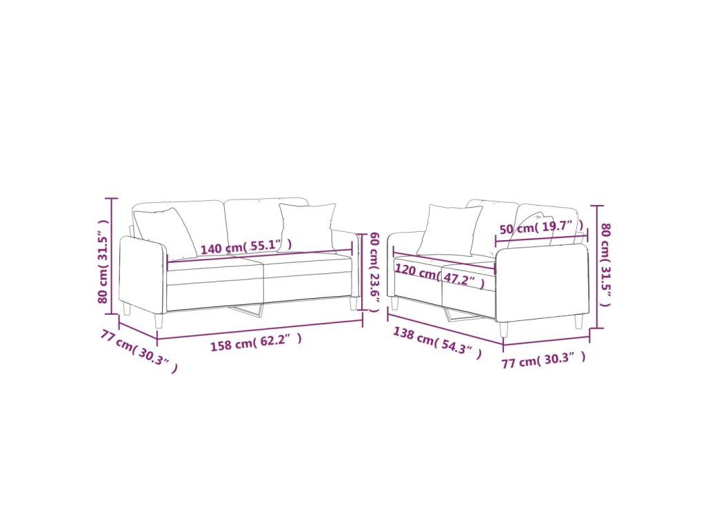 vidaXL 2-dielna sedacia súprava s vankúšmi sivohnedá látka
