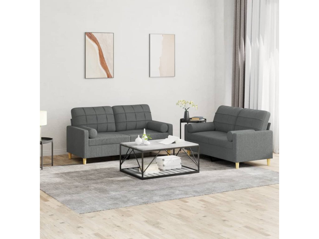vidaXL 2-dielna sedacia súprava s vankúšmi tmavosivá látka