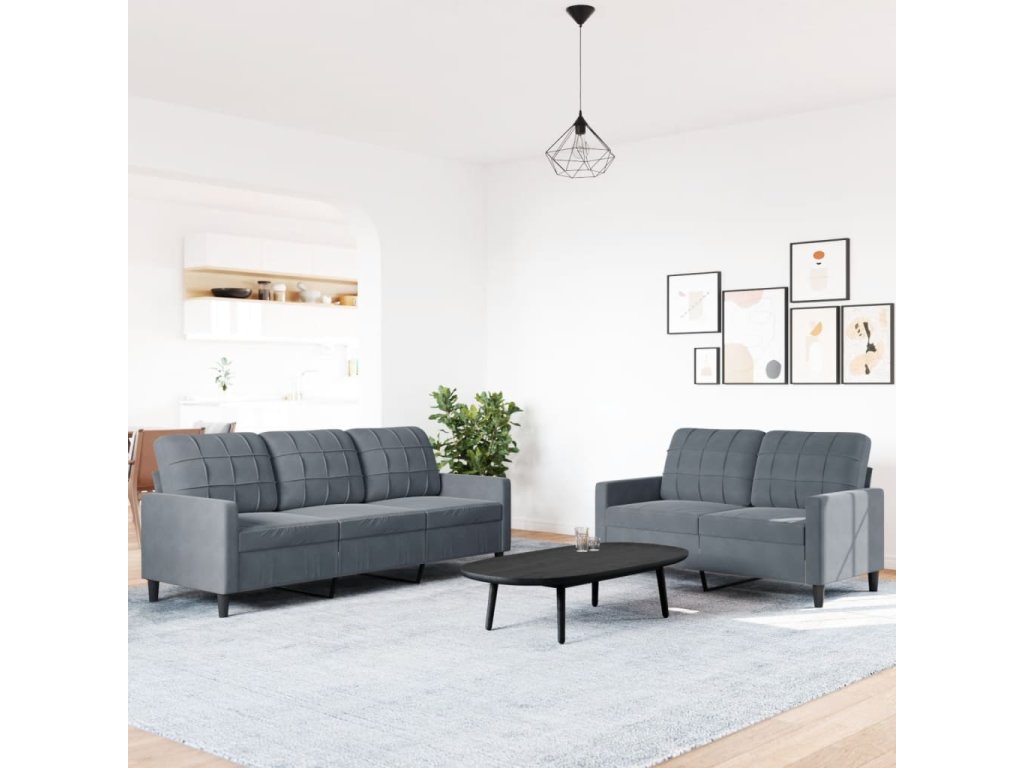 vidaXL 2-dielna sedacia súprava s vankúšmi tmavosivá zamat
