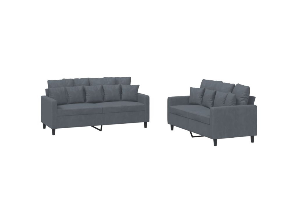 vidaXL 2-dielna sedacia súprava s vankúšmi tmavosivá zamat