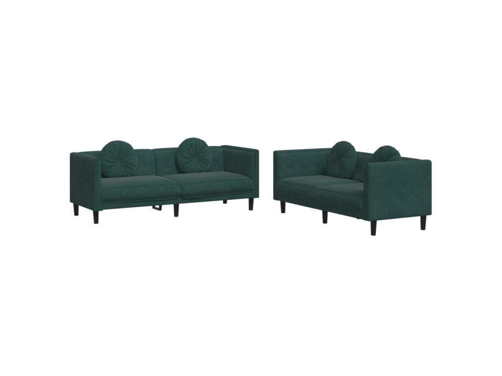 vidaXL 2-dielna sedacia súprava s vankúšmi tmavozelená zamat