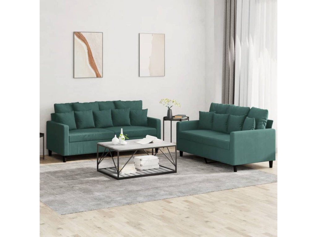 vidaXL 2-dielna sedacia súprava s vankúšmi tmavozelené zamat