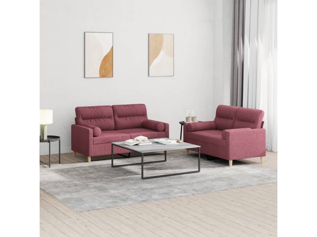 vidaXL 2-dielna sedacia súprava s vankúšmi vínovo červená látka