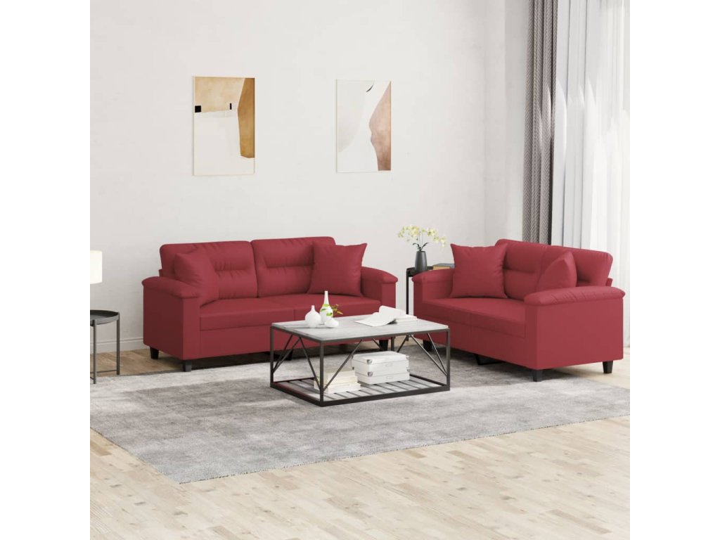 vidaXL 2-dielna sedacia súprava s vankúšmi vínovo-červená umelá koža