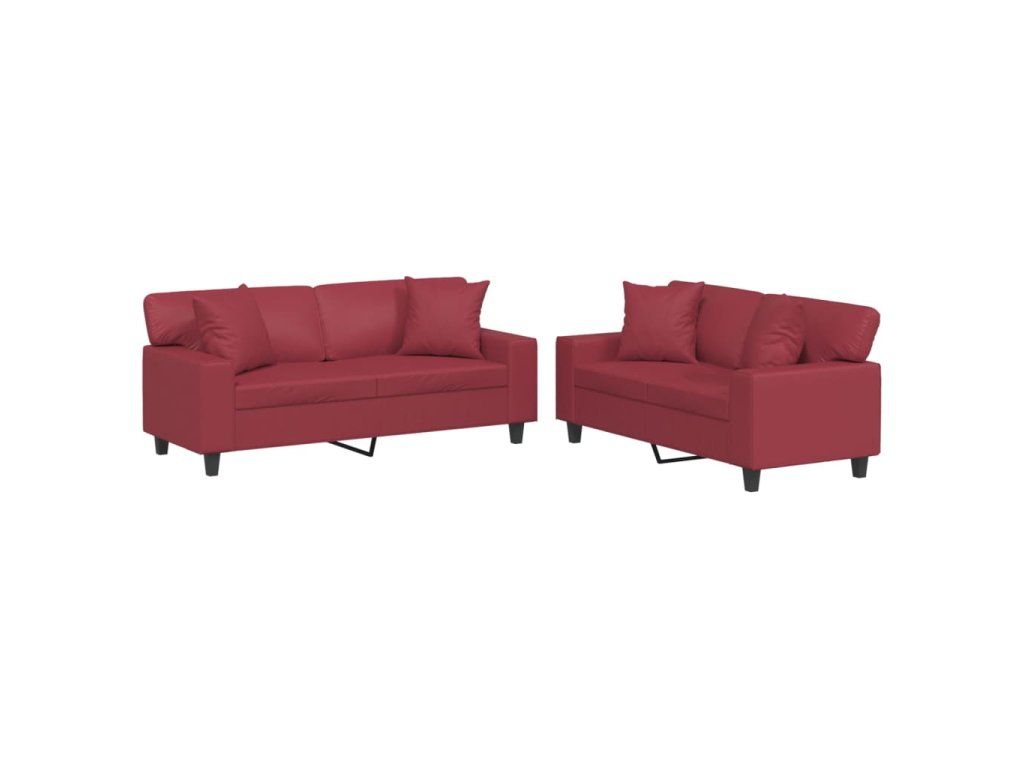 vidaXL 2-dielna sedacia súprava s vankúšmi vínovo-červená umelá koža