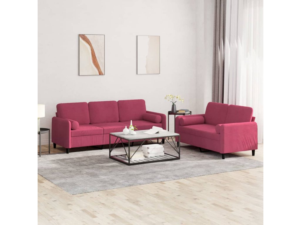 vidaXL 2-dielna sedacia súprava s vankúšmi vínovo červená zamat