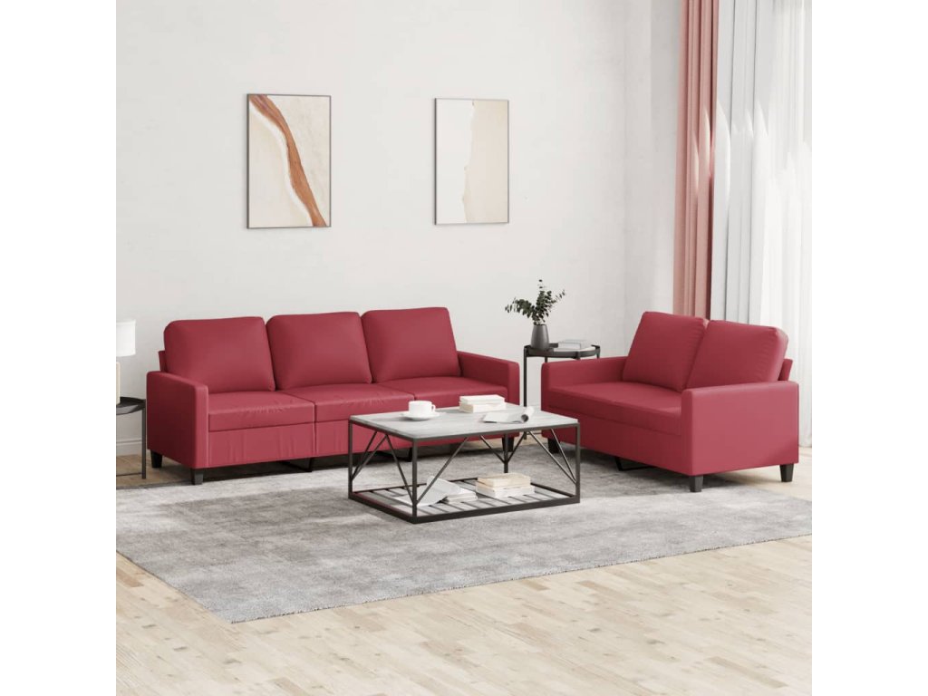 vidaXL 2-dielna sedacia súprava s vankúšmi vínovočervená umelá koža