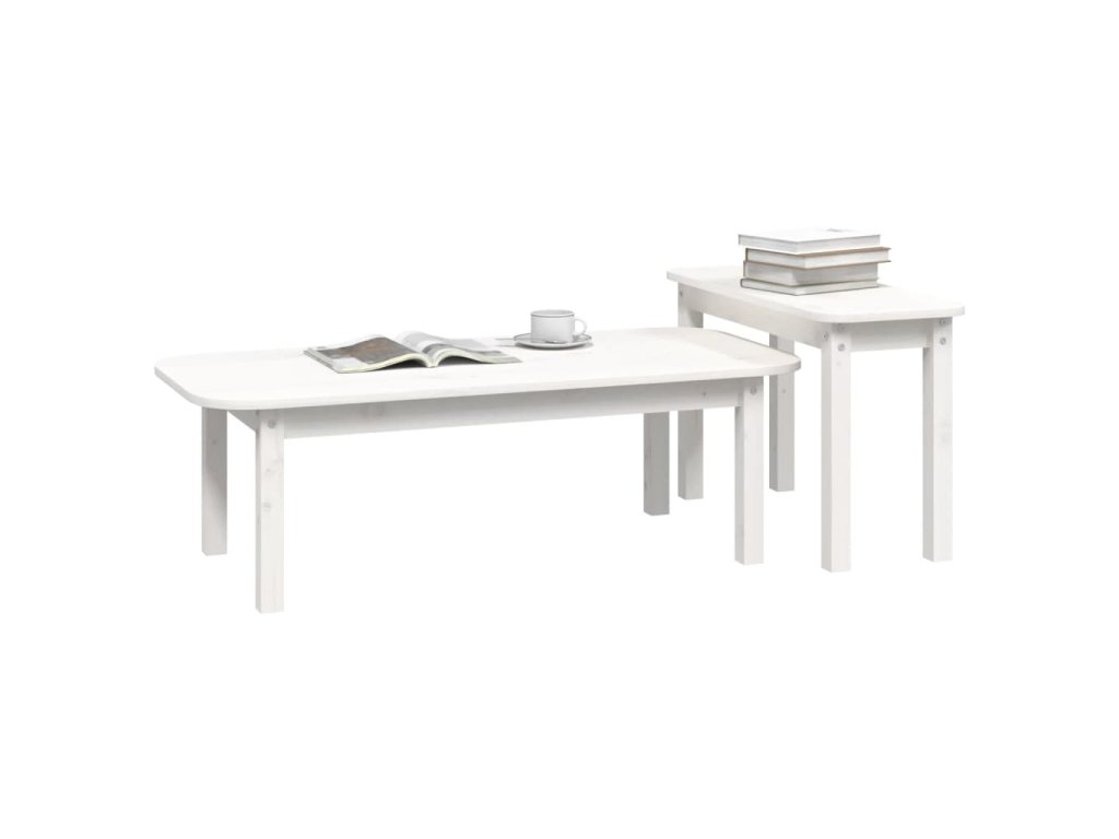 vidaXL 2-dielna súprava konferenčných stolíkov biela masívna borovica