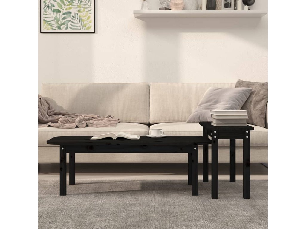 vidaXL 2-dielna súprava konferenčných stolíkov čierna masívna borovica