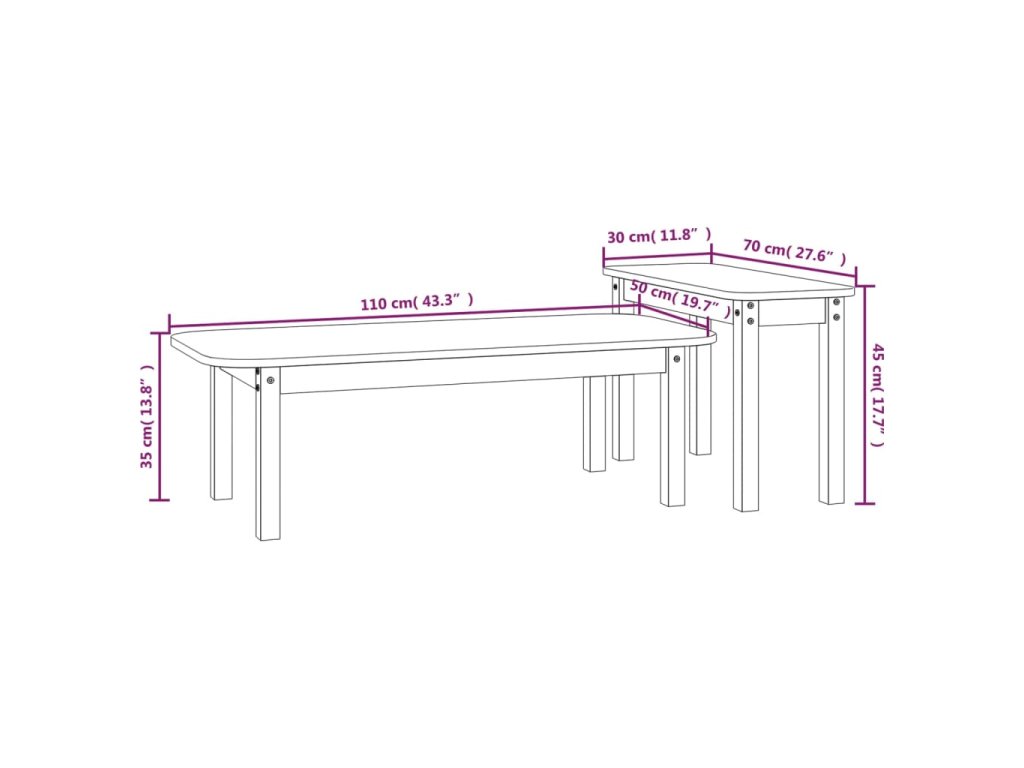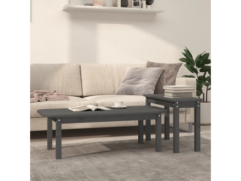 vidaXL 2-dielna súprava konferenčných stolíkov sivá masívna borovica