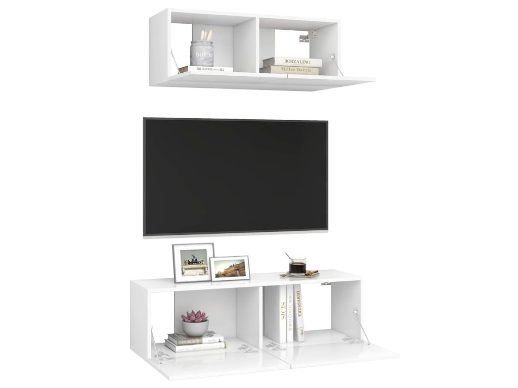 Táto sada závesných TV skriniek je vybavená veľkým úložným priestorom na uloženie rôznych predmetov a vo vašej domácnosti vytvorí praktický a pútavý doplnok.