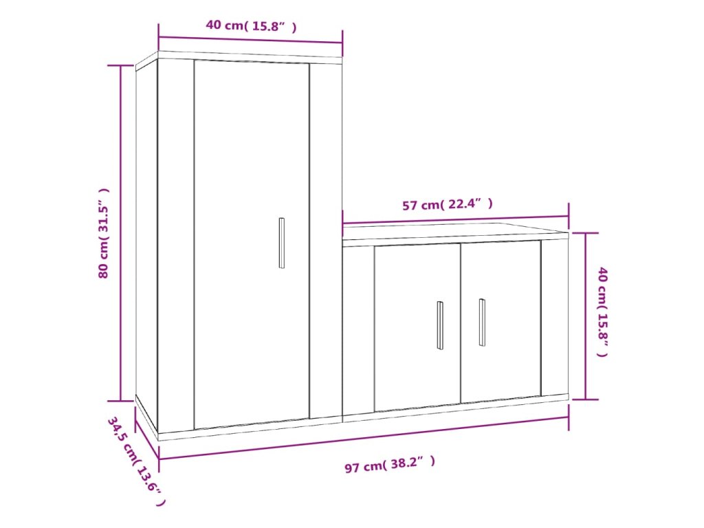 - 1 x TV skrinka: 40 x 34,5 x 80 cm (D x Š x V)