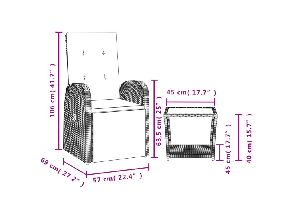 - Rozmery kresla v polohe na sedenie: 57 x 69 x 106 cm (Š x H x V)