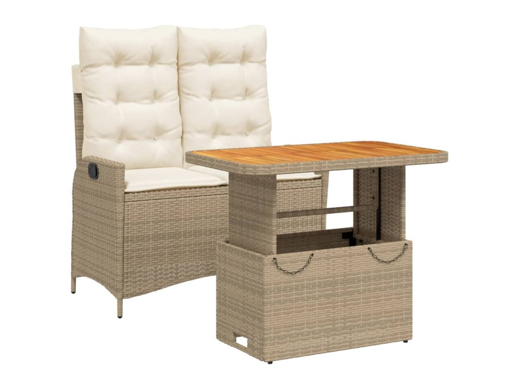 - Materiál: PE ratan, práškovaná oceľ, masívne akáciové drevo s olejovým náterom