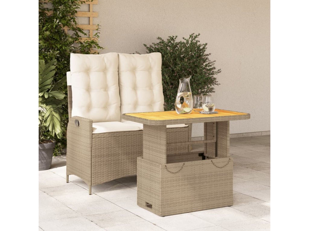 vidaXL 2-dielna záhradná jedálenská súprava+podložky, béžová polyratan