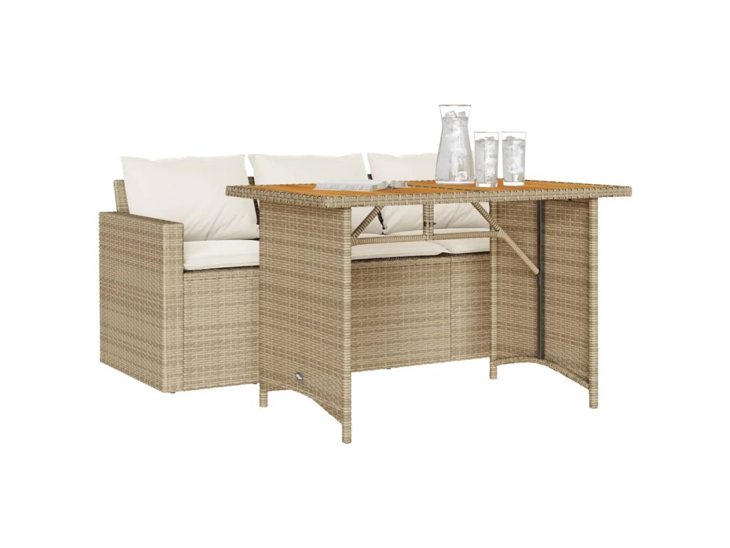 vidaXL 2-dielna záhradná jedálenská súprava+podložky, béžová polyratan