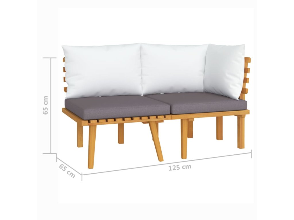 Súprava vonkajšieho nábytku je vyrobená z masívneho akáciového dreva a je odolná voči poveternostným vplyvom a má vysokú životnosť. V kombinácii s hrubo čalúnenými vankúšmi poskytuje táto sedacia súprava maximálne pohodlie. Môžete ju skombinovať s inými modulárnymi segmentmi a vytvoriť si tak svoje vlastné osobné záhradné sedacie súpravy!