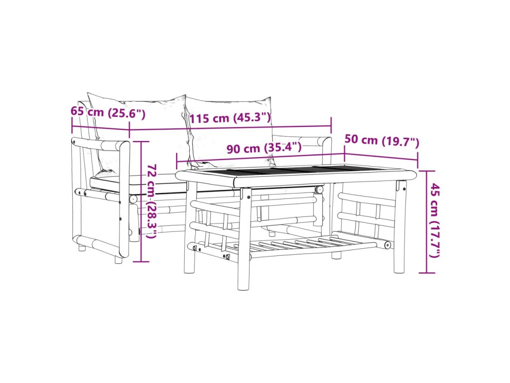 vidaXL 2-dielna záhradná sedacia súprava s vankúšmi bambus