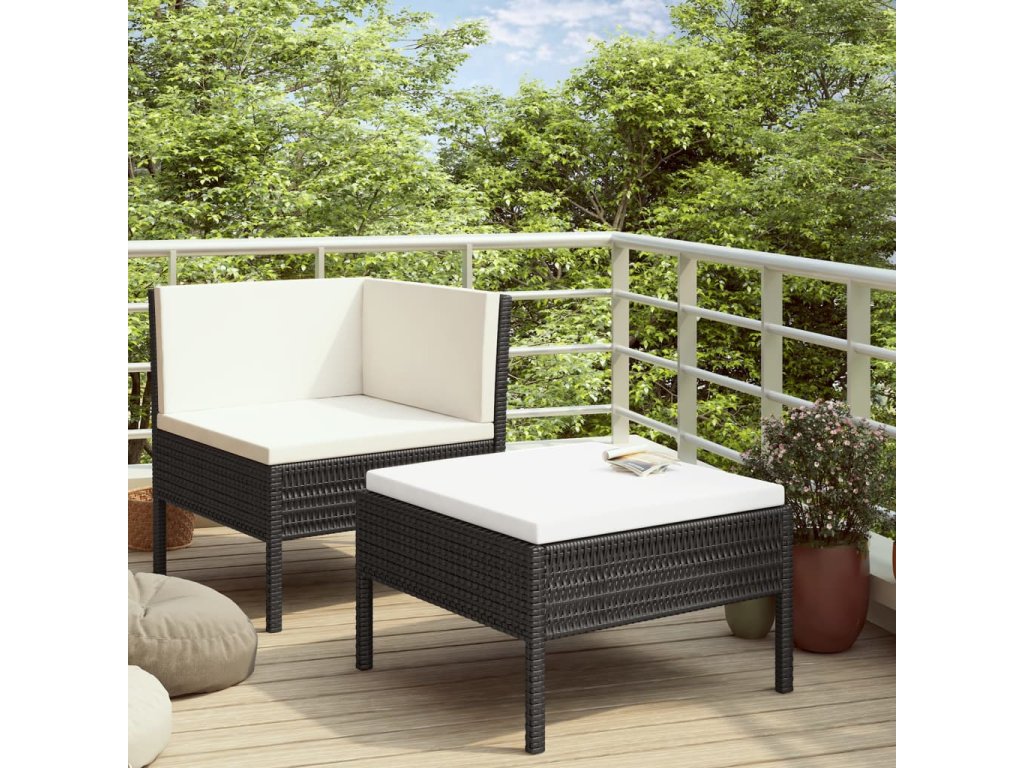 vidaXL 2-dielna záhradná sedacia súprava s vankúšmi čierna polyratanová