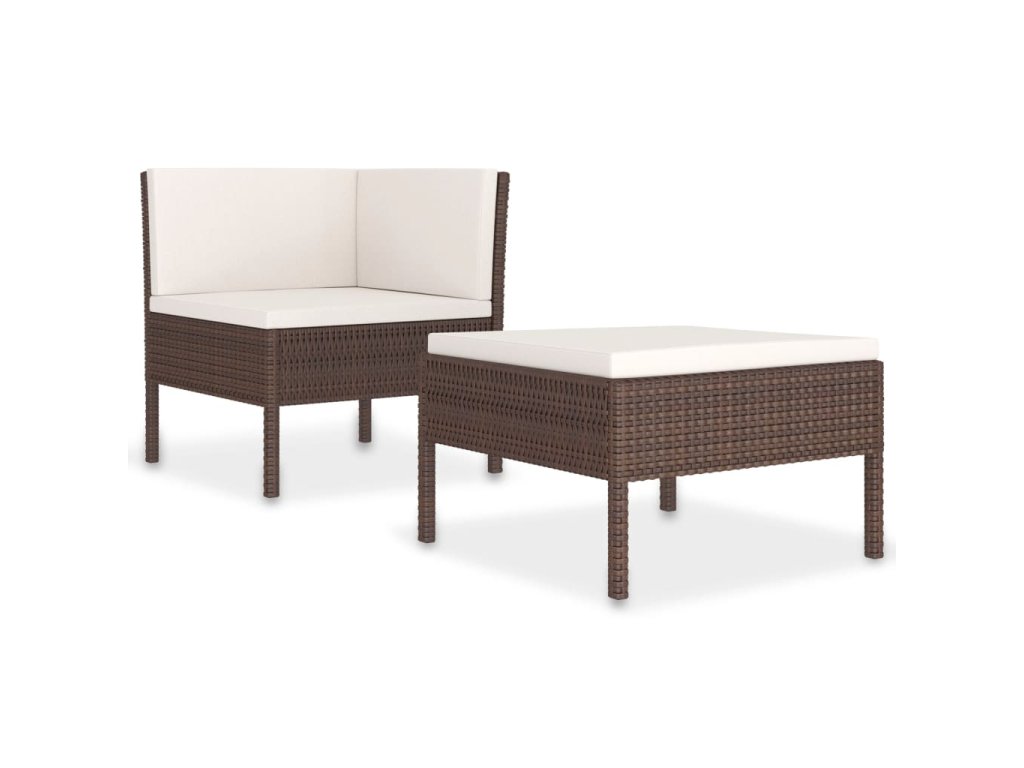 vidaXL 2-dielna záhradná sedacia súprava s vankúšmi polyratan hnedá
