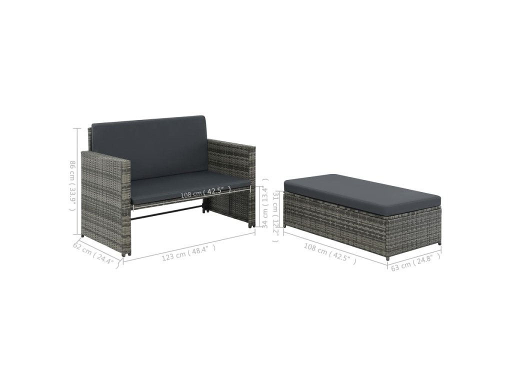 vidaXL 2-dielna záhradná sedacia súprava s vankúšmi sivá polyratanová