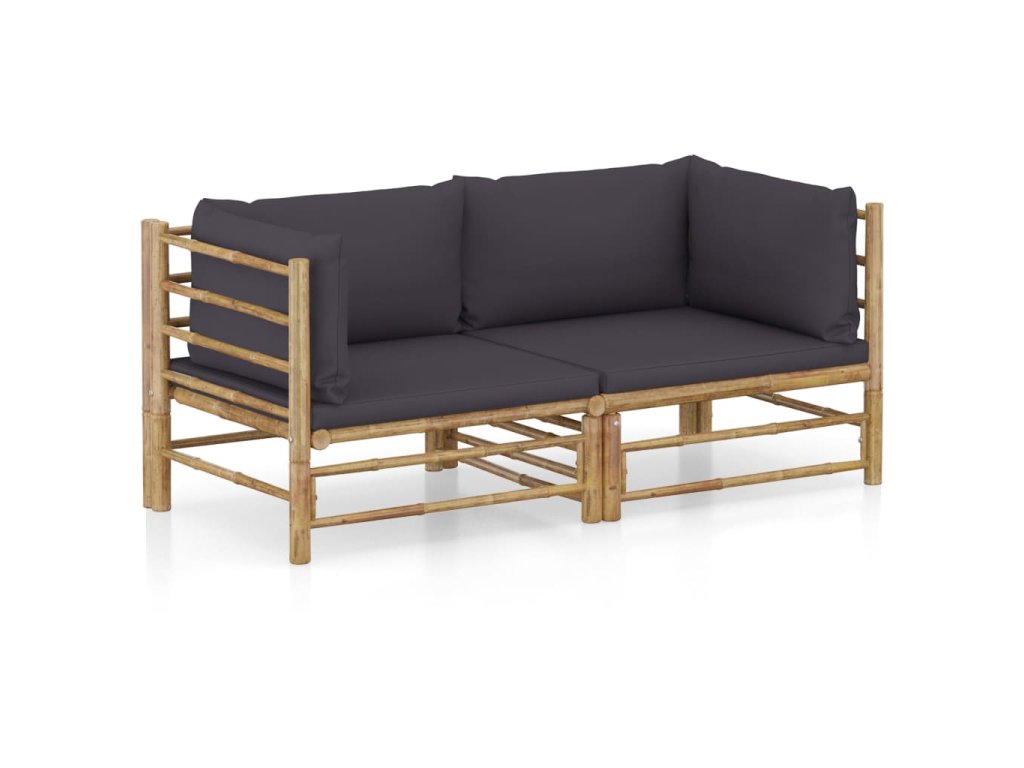 vidaXL 2-dielna záhradná sedacia súprava tmavosivé vankúše bambus