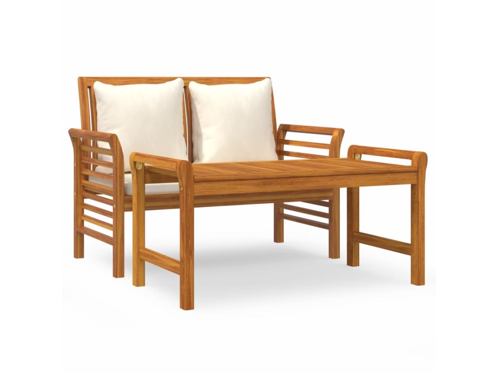 vidaXL 2-dielna záhradná súprava a krémovo-biele vankúše masívne drevo