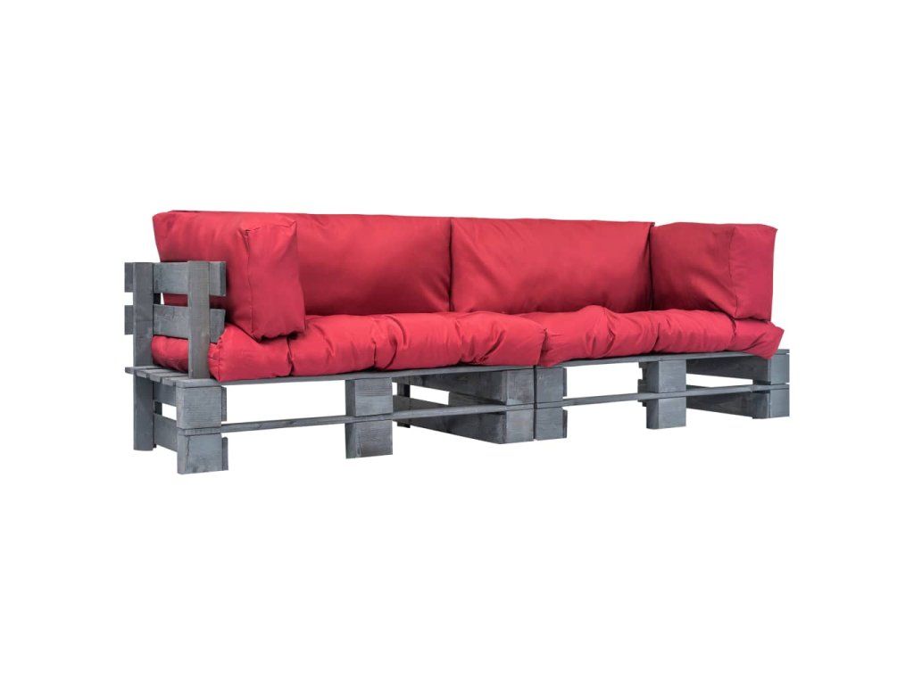 vidaXL 2-dielna záhradná súprava z paliet, červené podložky, borovica