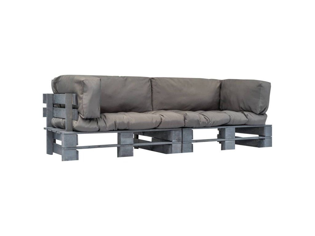 vidaXL 2-dielna záhradná súprava z paliet, sivé podložky, borovica