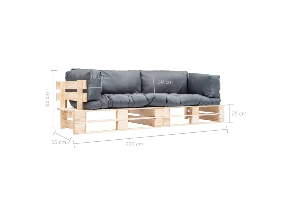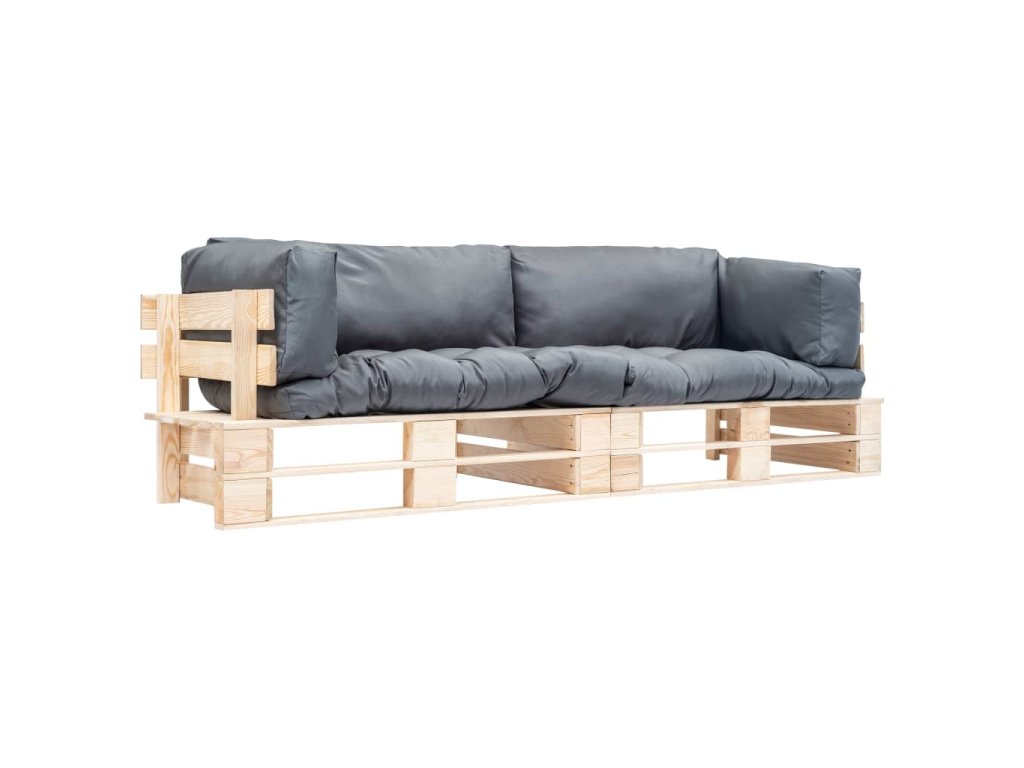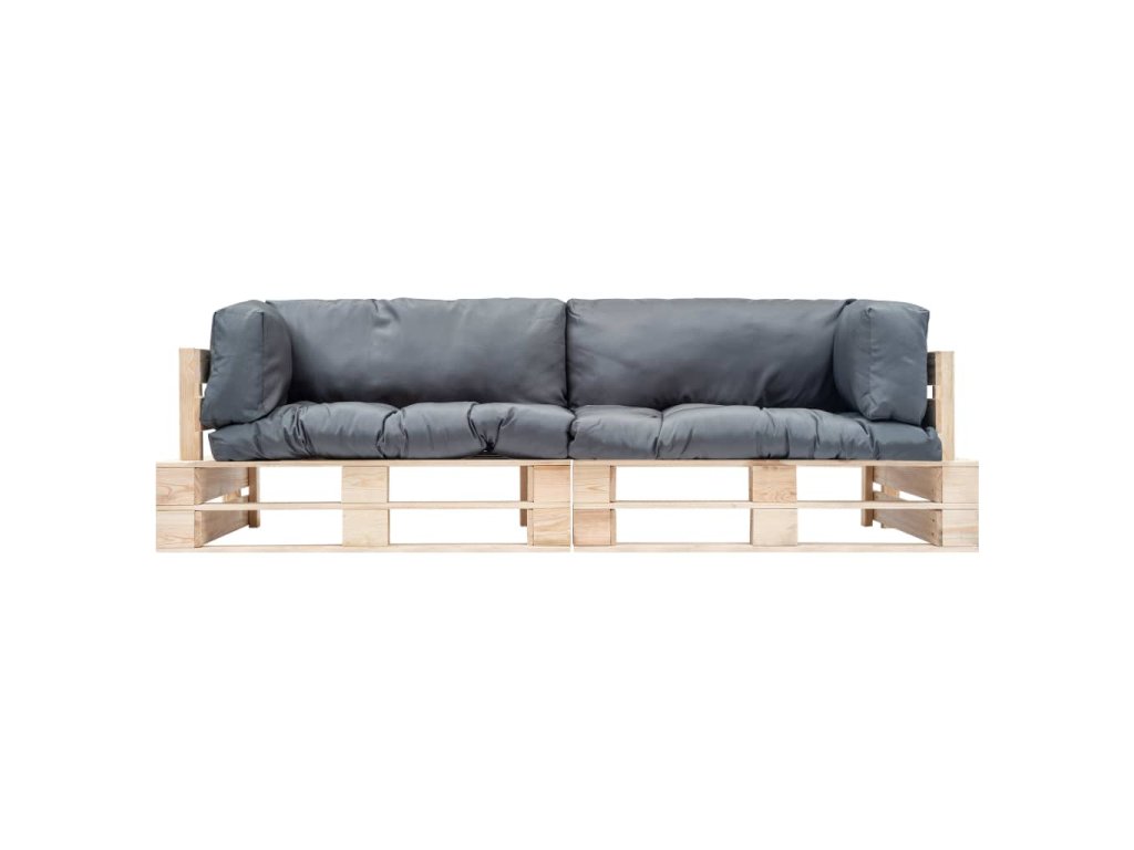 vidaXL 2-dielna záhradná súprava z paliet, sivé podložky, borovica