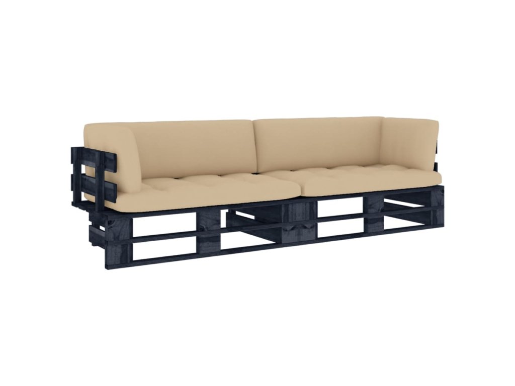 vidaXL 2-miestna paletová pohovka s poduškami čierna borovicové drevo