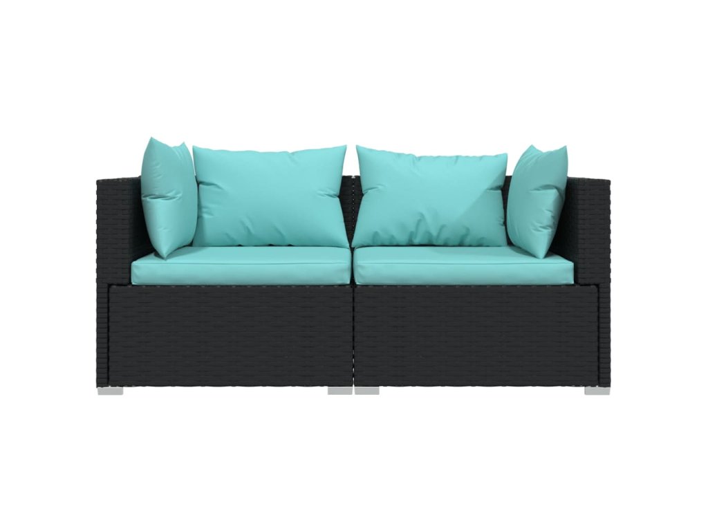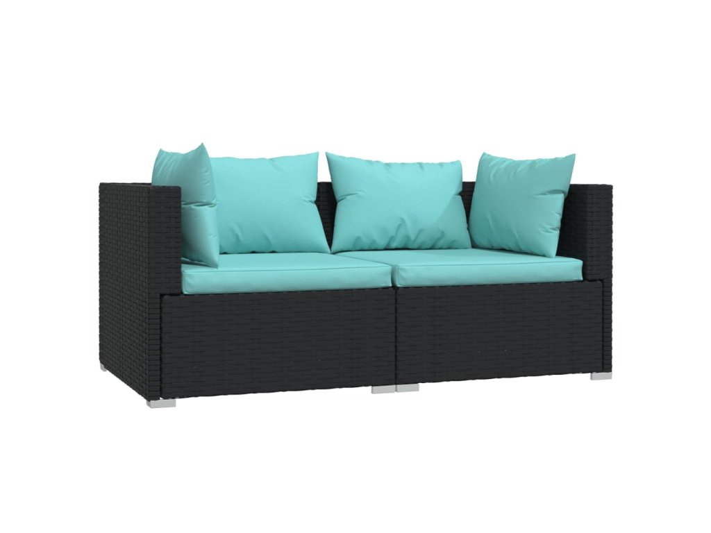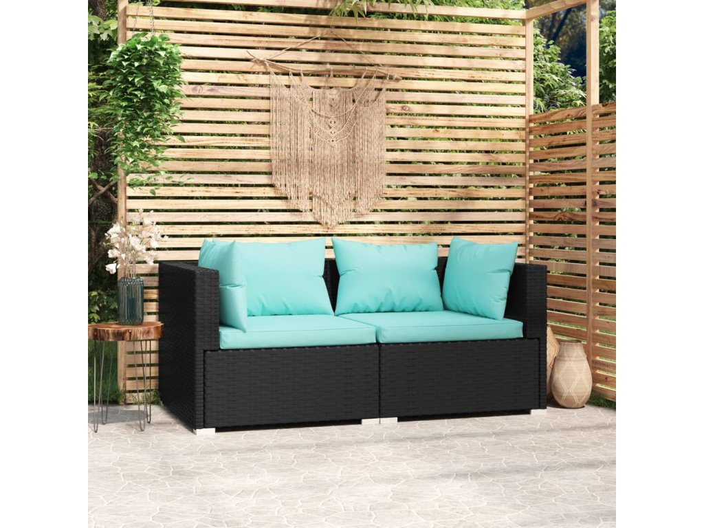 vidaXL 2-miestna pohovka s podložkami čierna polyratan