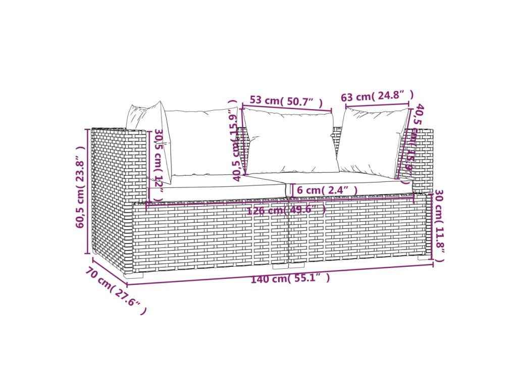 Terasové sedadlo má pevný oceľový rám s práškovanou povrchovou úpravou a plastové chrómované nohy, ktoré sú vysoko odolné. 2-miestna pohovka je navrhnutá z vodeodolného PE ratanu, vďaka čomu je odolná a vhodná na každodenné vonkajšie použitie. Vďaka ľahkej konštrukcii sa táto záhradná pohovka ľahko presúva. Hrubo polstrované a odnímateľné vankúše sú veľmi pohodlné. Okrem toho modulárny dizajn tiež umožňuje umiestniť súpravu v ľubovoľnom usporiadaní alebo ju skombinovať s inými modulárnymi segmentmi podľa vašich potrieb!
