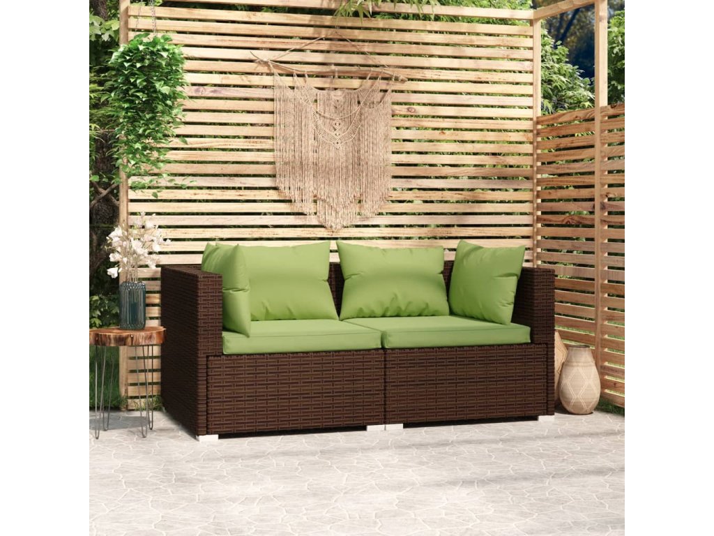 vidaXL 2-miestna pohovka s podložkami hnedá polyratan