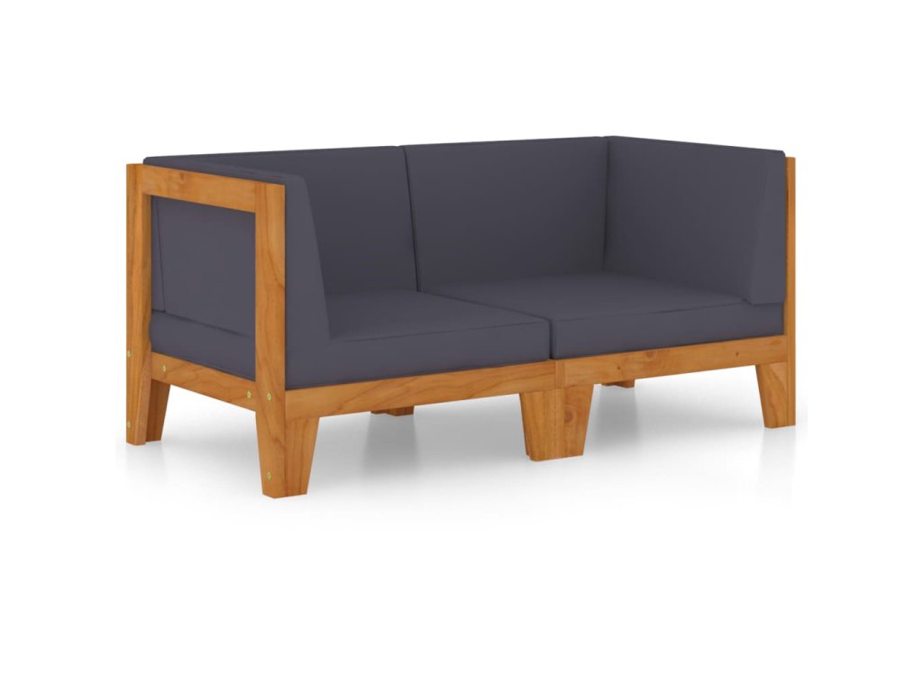 vidaXL 2-miestna pohovka s tmavosivými podložkami akáciový masív