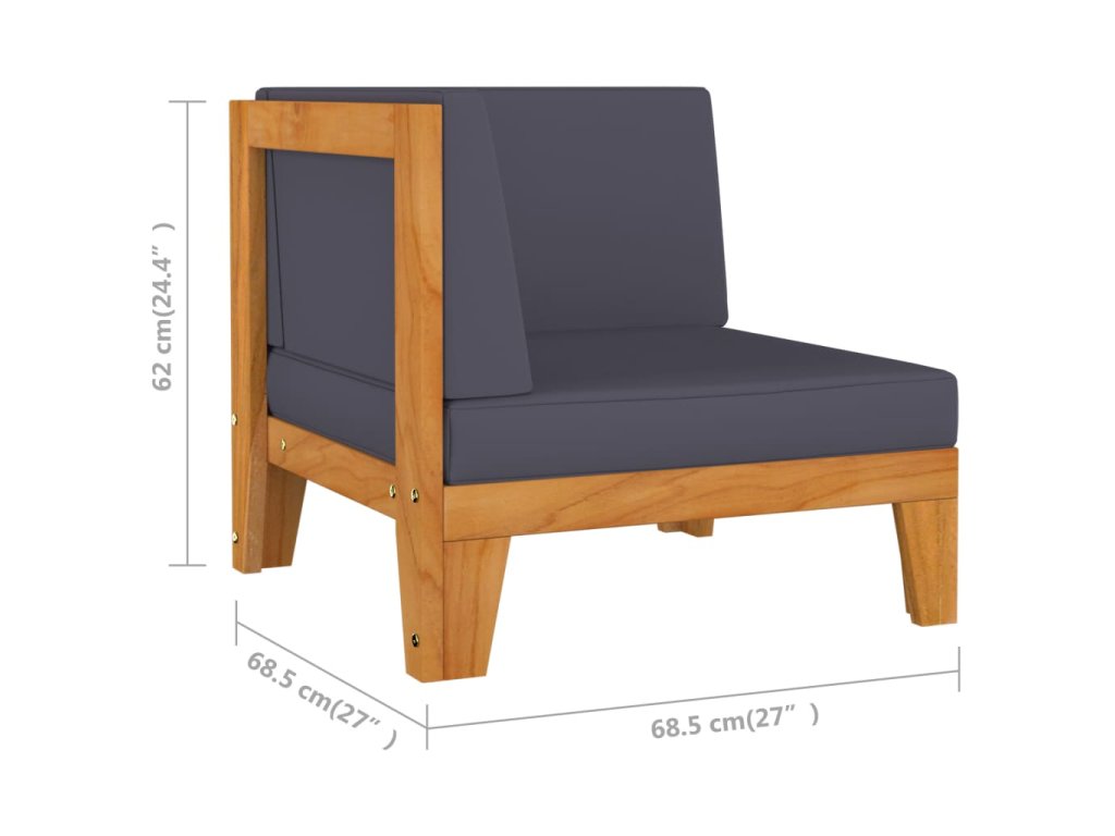 2 rohové sedadlá sú vyrobené z masívneho akáciového dreva, tropického tvrdého dreva, ktoré je odolné voči poveternostným vplyvom a je veľmi trvácne. Pohovka má pevnú konštrukciu a vyžaduje malú údržbu. V kombinácii s hrubo polstrovanými poduškami ponúka táto pohovka maximálne pohodlie. Táto sada je tiež ľahká a modulárna, vďaka čomu je úplne flexibilná a ľahko sa presúva, aby vyhovovala akémukoľvek prostrediu. Môžete ju skombinovať s inými modulárnymi segmentmi, ako je konferenčný stolík, opierka nôh a stredná pohovka, a vytvoriť si tak vlastnú konfiguráciu záhradného posedenia!